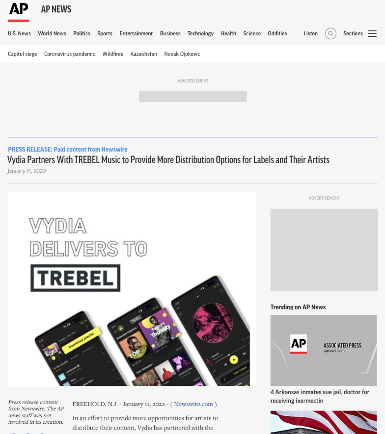 Utilizing the newsworthiness of various launches from the Vydia company, we outreached to top tier music and tech media and secured articles on various platforms that featured different members of the Vydia team and their expertise. Over the span of three months we were able to secure articles in Forbes, Afrotech, AP News, and more.